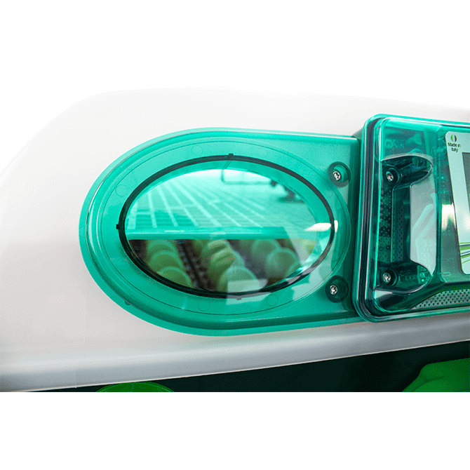 - Ventola interna regolabile: consente il controllo dell’umidità durante le fasi finali dell’incubazione.