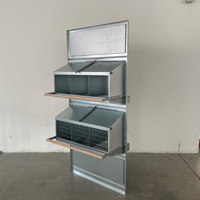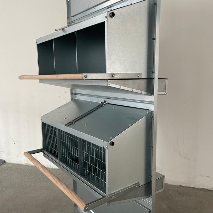 Utilizzando il pannello nido potrete agevolmente provvedere alla raccolta delle uova dall'esterno senza quindi dover entrare in allevamento; I vassoi di deposizione sono completamente estraibili per una pulizia estremamente agevole del fondo.