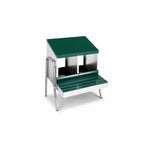 Nido per galline ovaiole con scivolo antischiacciamento e vaschetta per la facile raccolta delle uova. Fondo e coperchio in metallo, che garantiscono una perfetta igiene della zona di deposizione e/o cova. Questo nido non ha bisogno di essere appeso, in quanto dotato di robuste e stabili gambe indipendenti, che lo rendono di circa 20 cm rialzato da terra. Basterà semplicemente accostarlo ad una parete del vostro pollaio e/o allevamento.