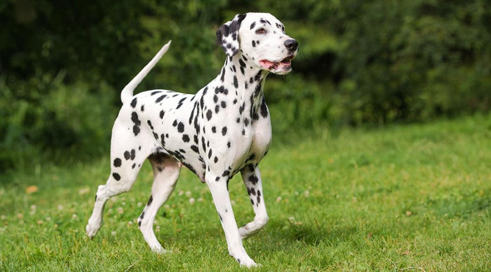 Der Dalmatiner ist ein schlanker und muskulöser Hund mit bernsteinfarbenen Augen und Hängeohren, spitz zulaufenden Beinen und einem länglichen Kopf und Schwanz. Sein Name leitet sich von seinem berühmten schwarz-weißen (manchmal braunen) gefleckten Fell ab, da seine Rasse ihren Ursprung im alten Dalmatien zu haben scheint, das historisch durch das Emblem des Leoparden symbolisiert wird.