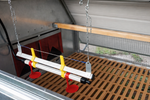 Il posatoio è realizzato in legno di abete, progettato per offrire alle galline il corretto appoggio durante le ore di riposo notturno.