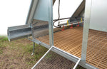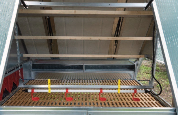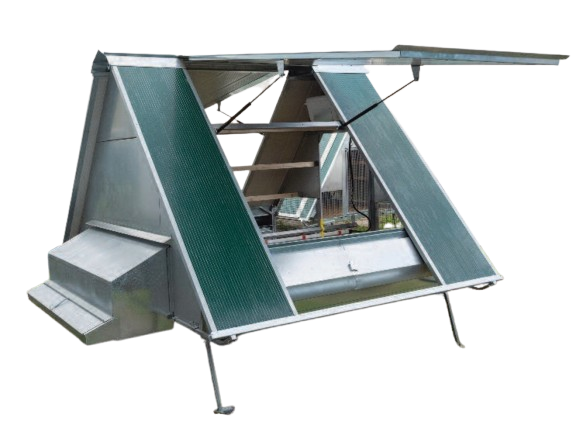 Il pollaio è dotato di tetto coibentato in termoparete con apertura su due lati, tramite sistema a vasistas con pistoni ammortizzati. Questa soluzione permette di facilitare le operazioni di manutenzione e migliorare il ricircolo dell’aria all’interno della struttura, rendendo la gestione del pollaio più semplice e pratica.