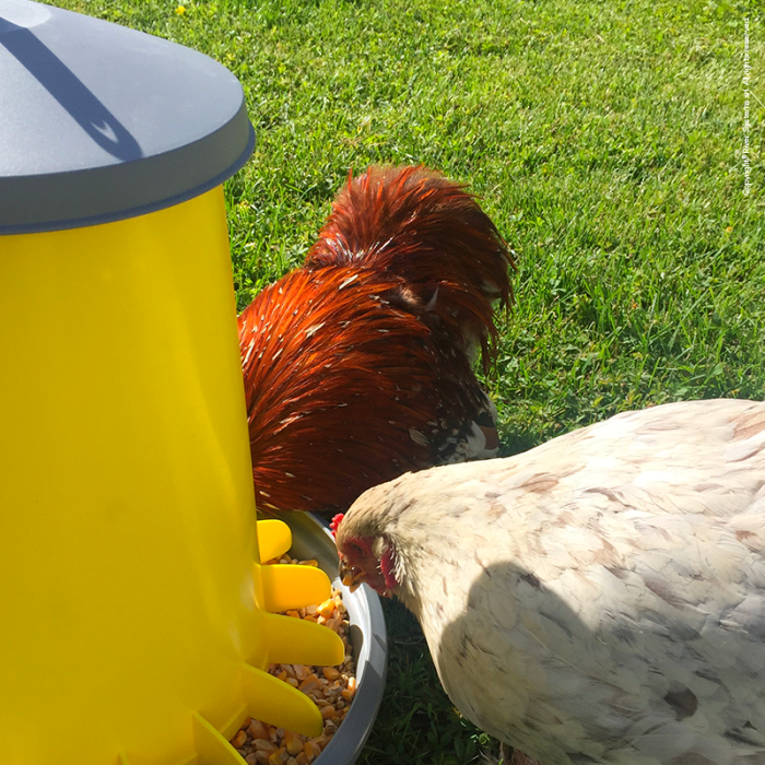 Einzelpreis proHühnerfutterautomat mit Füßen mit Trichtersystem.
