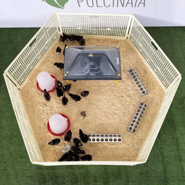 Grazie a questo accessorio per l'allevamento avicolo amatoriale potrete allevare i vostri pulcini sin dal primo giorno dalla loro nascita fino a un mese di vita circa.