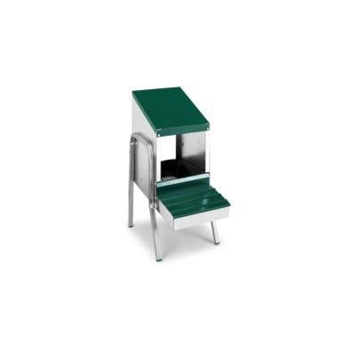 Nido per galline ovaiole con scivolo antischiacciamento e vaschetta per la facile raccolta delle uova. Fondo e coperchio in metallo, che garantiscono una perfetta igiene della zona di deposizione e/o cova. Questo nido non ha bisogno di essere appeso, in quanto dotato di robuste e stabili gambe indipendenti, che lo rendono di circa 20 cm rialzato da terra. Basterà semplicemente accostarlo ad una parete del vostro pollaio e/o allevamento.