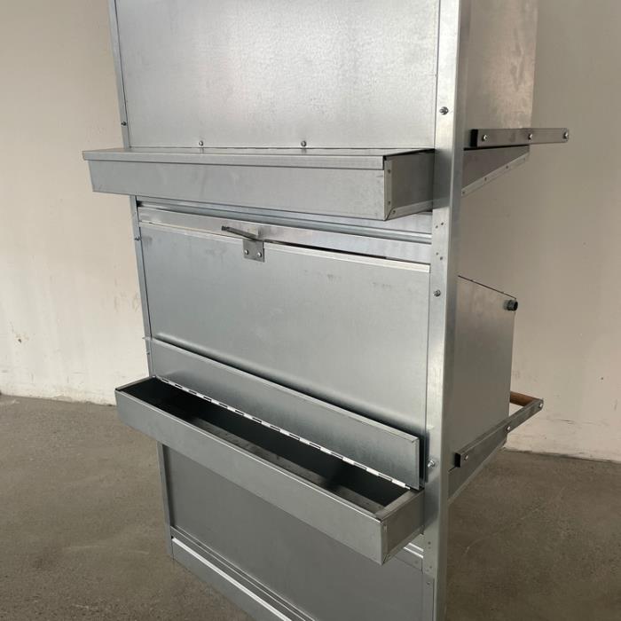 Utilizzando il pannello nido potrete agevolmente provvedere alla raccolta delle uova dall'esterno senza quindi dover entrare in allevamento; I vassoi di deposizione sono completamente estraibili per una pulizia estremamente agevole del fondo.
