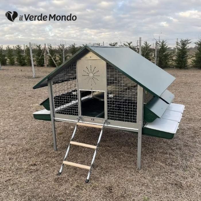 Questa casetta per galline in metallo è adatta sia per galline ovaiole che per altri animali da cortile come quaglie, conigli, fagiani, ecc.