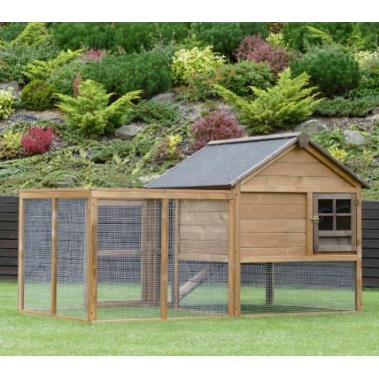 Questo pollaio per galline felici è dotato di zona giardino coperta e sicura. Vi sarà possibile lasciare all'interno per gran parte della giornata i Vostri amici animali.