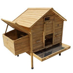 Il pollaio è completo di posatoi. Il cassetto per la deposizione è doppio e diviso in due scompartimenti per dar la possibilità alle galline di deporre nello stesso momento o per poter dedicare un'area per la cova e uno per la deposizione nel caso tu abbia la fortuna di avere una chioccia all'interno del pollaio.