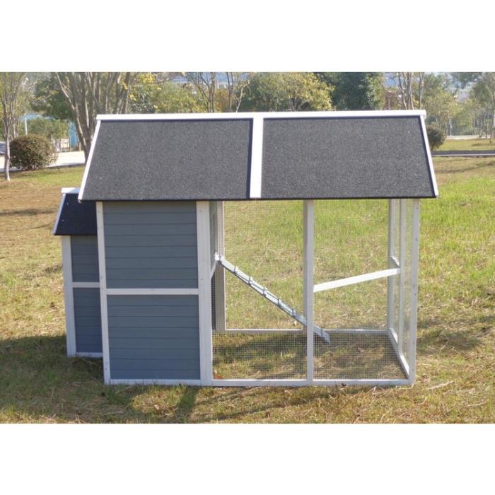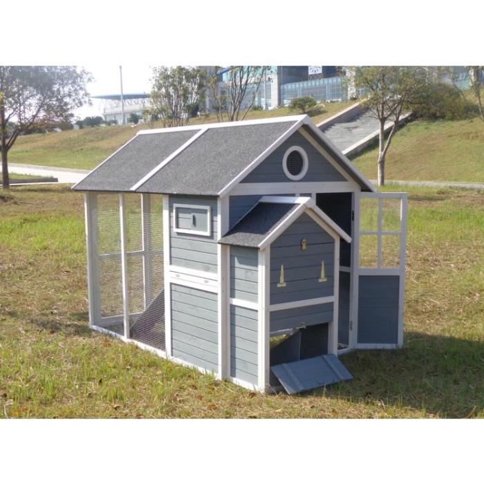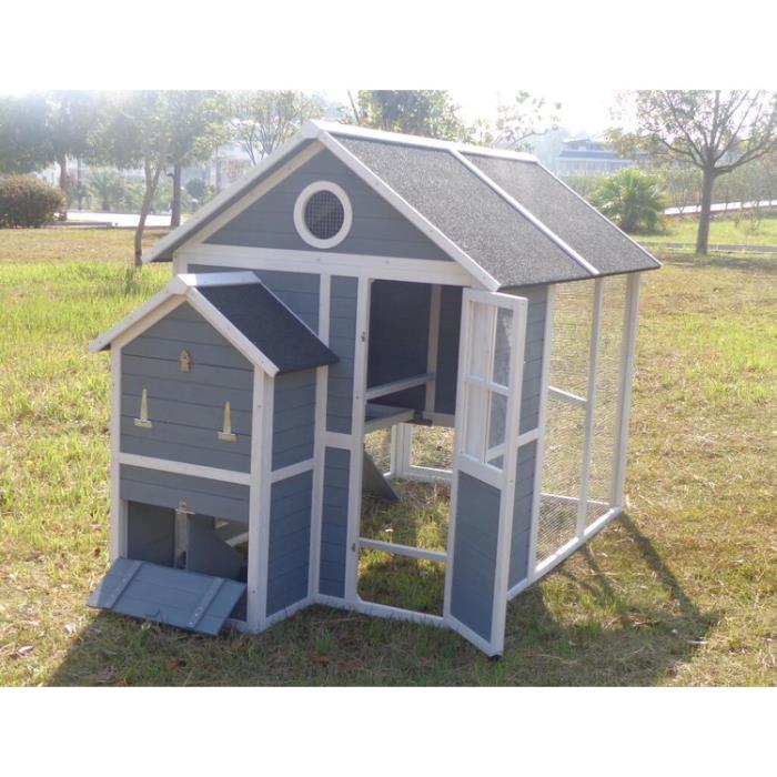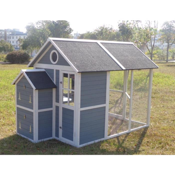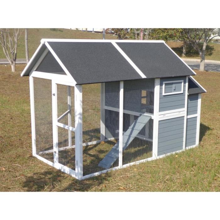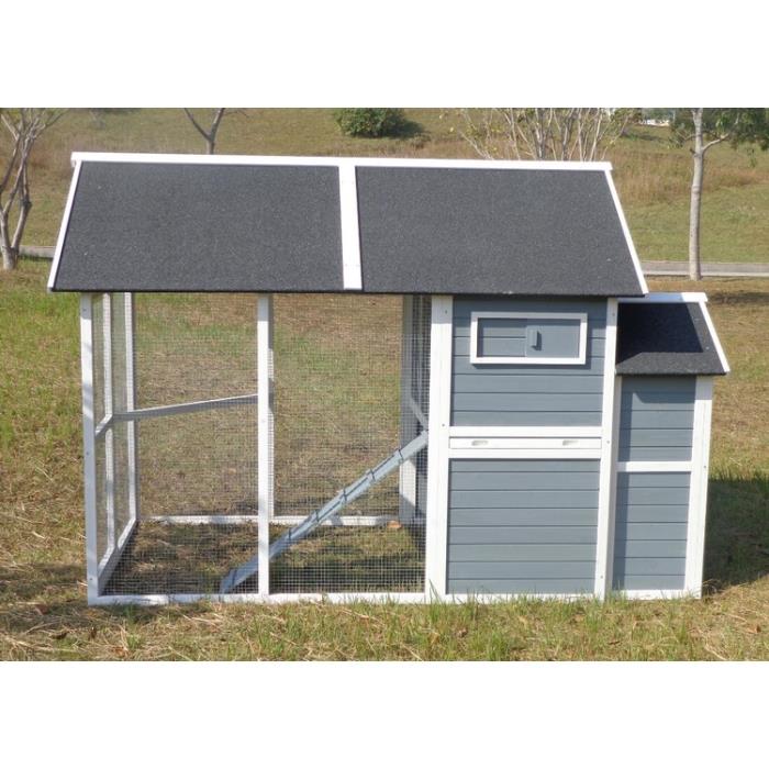 Con recinto, molto robusto e semplice da montare. Il tetto è bel lavorato, bituminato e resistente alla pioggia ed agli agenti atmosferici. Ideale per galline, anatre, gatti, cani di piccola taglia, tartarughe, furetti, porcellini d'india, cincillà, ecc.
