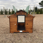 Per questo e tutti i modelli in Laminato HPL è compresa nel prezzo la Porta Antipredatore di Chicken Guard la quale ha un dispositivo esclusivo di chiusura sicura anti volpe. Vi diamo la possibilità di scegliere la versione ANTIPREDATORE. Con dispositivo Crepuscolare della Chicken Guard. In questa versione avrete le galline in perfetta sicurezza. Ideale anche per galli "canterini".