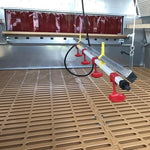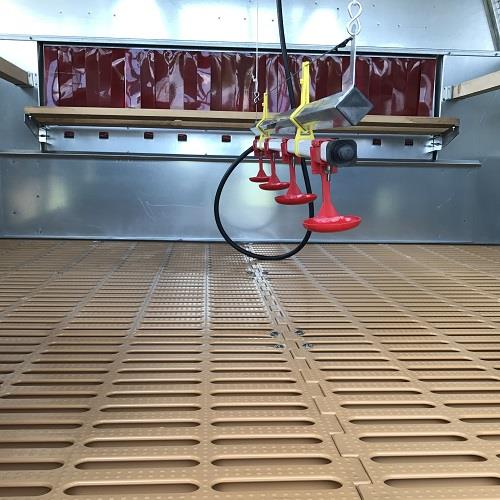 La pavimentazione è composta di pannelli modulari in PVC i quali sono rinforzati ulteriormente con una lamiera d'acciaio zincata. Le maglie del fondo sono larghe e danno la possibilità agli animali di poter eliminare le deiezioni direttamente con il passaggio e lo sfregamento in modo da rendere sempre pulito l'interno.