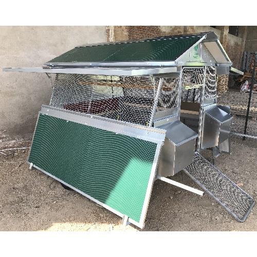 Il pollaio può essere accessoriato con un gancio traino per poter agganciato a mezzi d'opera per il trasporto nelle aree di allevamento.