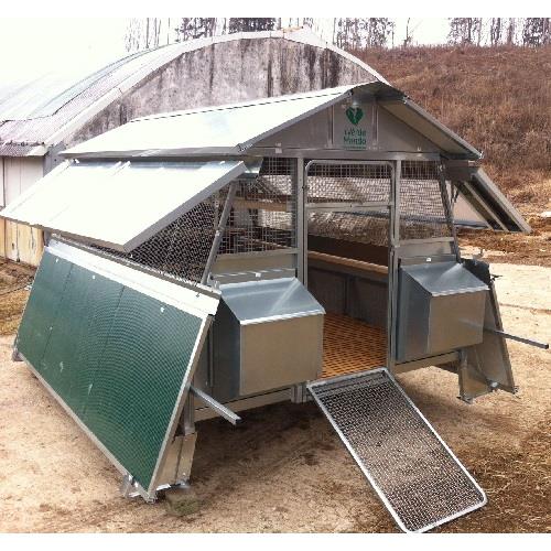 Il pollaio può essere accessoriato con un gancio traino per poter agganciato a mezzi d'opera per il trasporto nelle aree di allevamento.