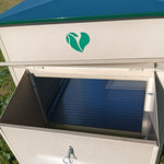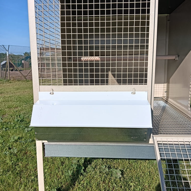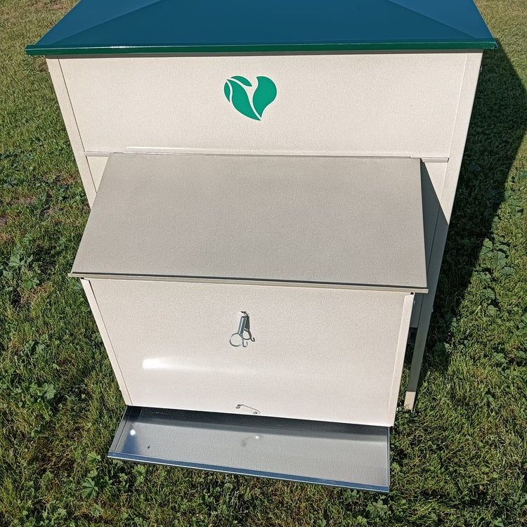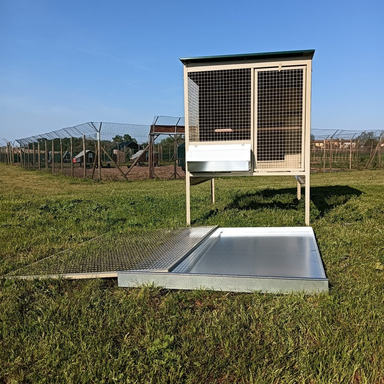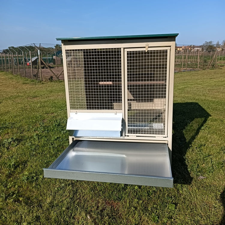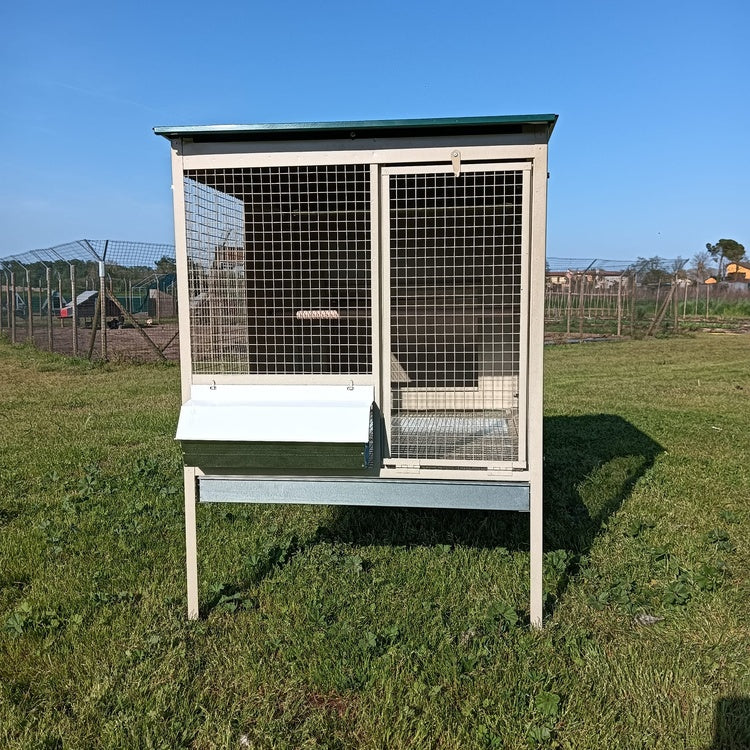 - Nido in metallo amovibile cm 55x28x40h con vassoio zincato estraibile per una facile pulizia; molla per una chiusura di sicurezza del coperchio.