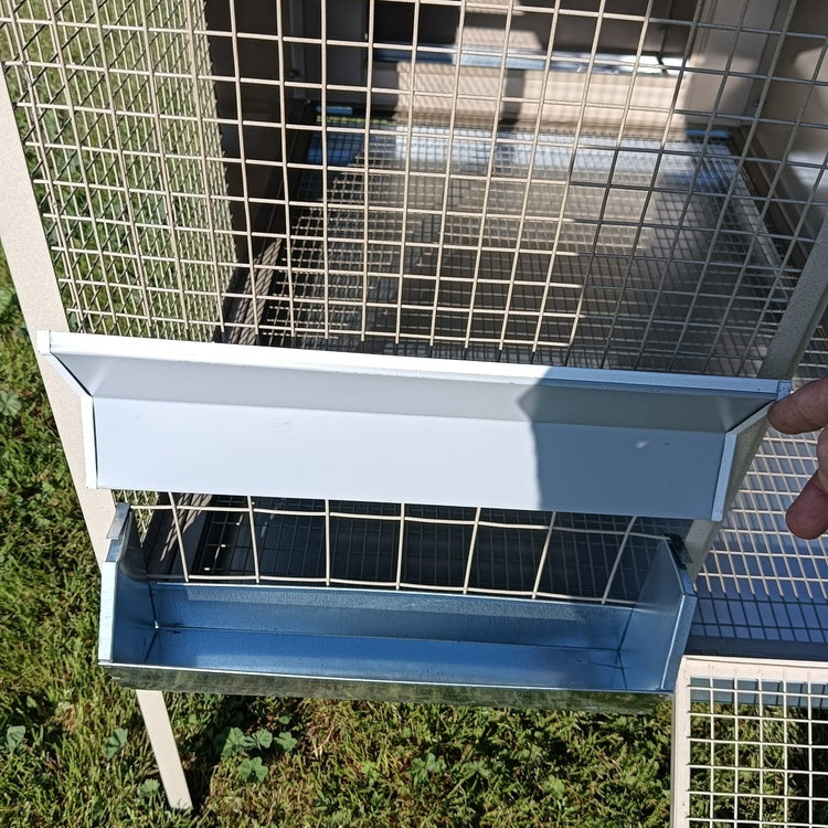 - Fondo con vassoio in metallo zincato estraibile dotato di rete superiore, anch'essa estraibile, che funge da isola feci