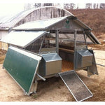 Il pollaio può essere accessoriato con un gancio traino per poter agganciato a mezzi d'opera per il trasporto nelle aree di allevamento.