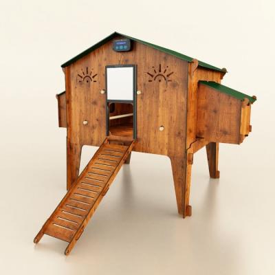 Per questo e tutti i modelli in Laminato HPL è compresa nel prezzo la Porta Antipredatore di Chicken Guard la quale ha un dispositivo esclusivo di chiusura sicura anti volpe. Vi diamo la possibilità di scegliere la versione ANTIPREDATORE. Con dispositivo Crepuscolare della Chicken Guard. In questa versione avrete le galline in perfetta sicurezza. Ideale anche per galli "canterini".
