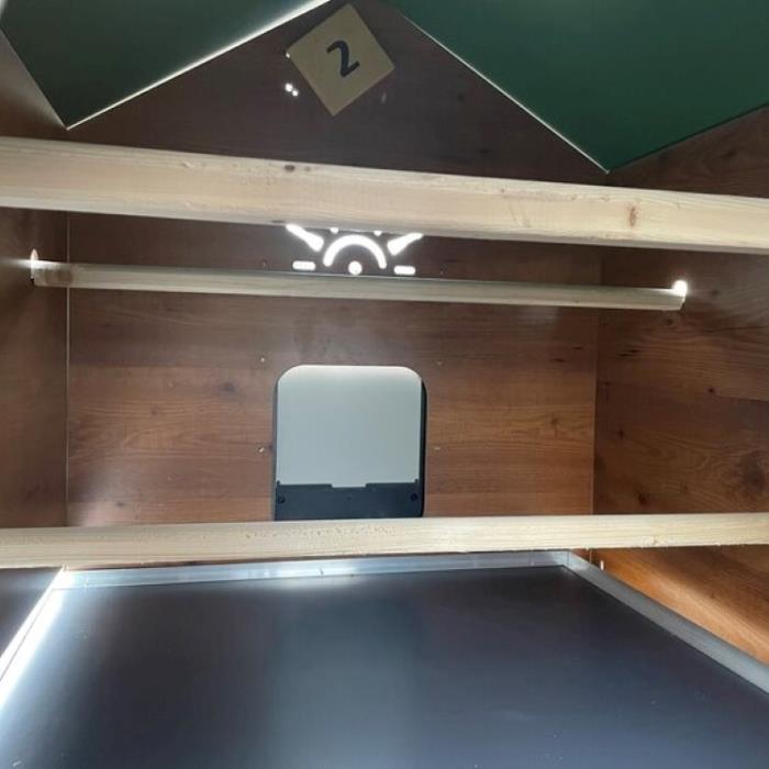 Per questo e tutti i modelli in Laminato HPL vi diamo la possibilità di scegliere la versione ANTIPREDATORE. Con porta e dispositivo Crepuscolare della Chicken Guard. In questo modo avrete le galline in perfetta sicurezza. Ideale anche per galli "canterini".