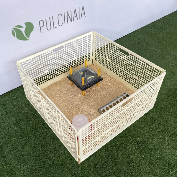 Grazie a questo accessorio per l'allevamento avicolo amatoriale potrete allevare i vostri pulcini sin dal primo giorno dalla loro nascita fino a un mese di vita circa.