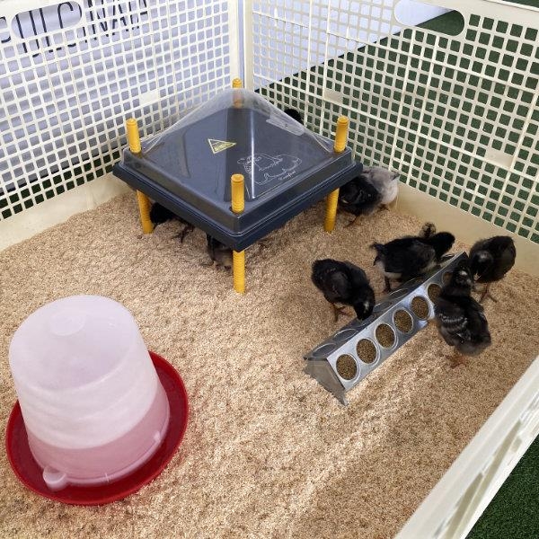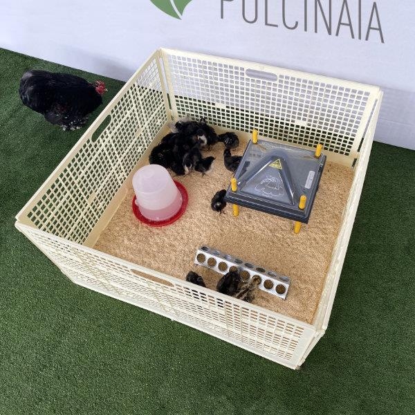 Grazie a questo accessorio per l'allevamento avicolo amatoriale potrete allevare i vostri pulcini sin dal primo giorno dalla loro nascita fino a un mese di vita circa.