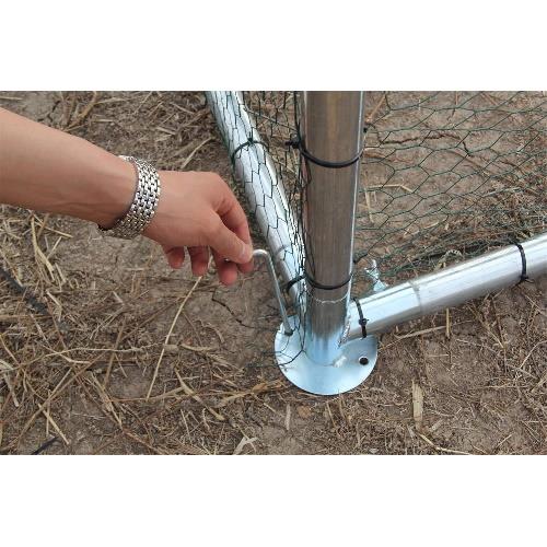 La gabbia per animali può essere assicurata a terra grazie ai pratici picchetti che avrete la possibilità di inserire nella parte bassa dei montanti
