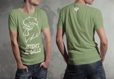 T-shirt con scritta "Attenti al Gallo" in cotone e in monocromia.