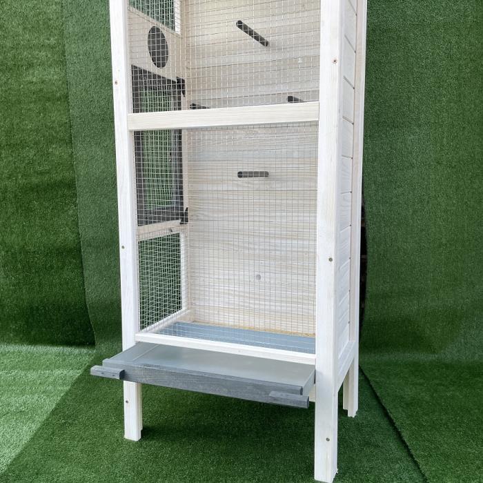 E' dotata di 2 porte. Una, la più grande e frontale ne racchiude una più piccola di dimensioni ridotte per permettervi di inserire il braccio senza il pericolo che gli uccelli possano scappare. E' presente anche la terza porticina sul fianco. In questo modo potrete ispezionare la voliera da due angolazioni diverse e vi sarà facile gestire accessori e animali