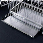 Il Cassetto per la pulizia è in lamiera con una bordo di 6 cm. con fermi per evitare estrazioni non corrette. E' dotato inoltre di una griglia antifeci con estrazione dedicata. La distanza tra cassetto e Griglia è di 10 cm.