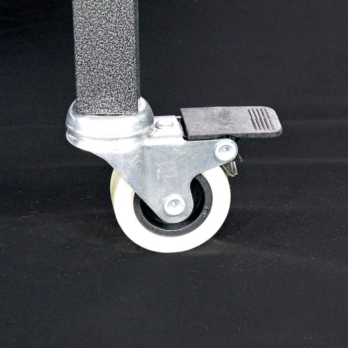 Le Ruote sono in gomma, 2 con freno e due senza, sono inoltre fissate con una saldatura questo garantisce una durata senza pari